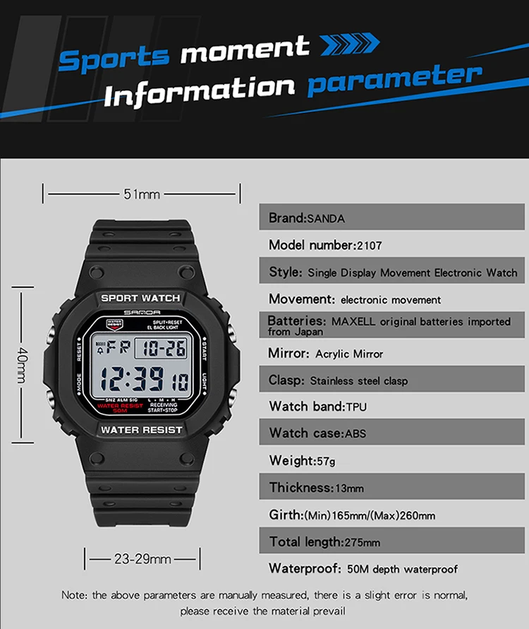 Sanda Mens Waterproof Military Watch