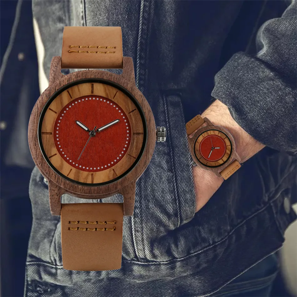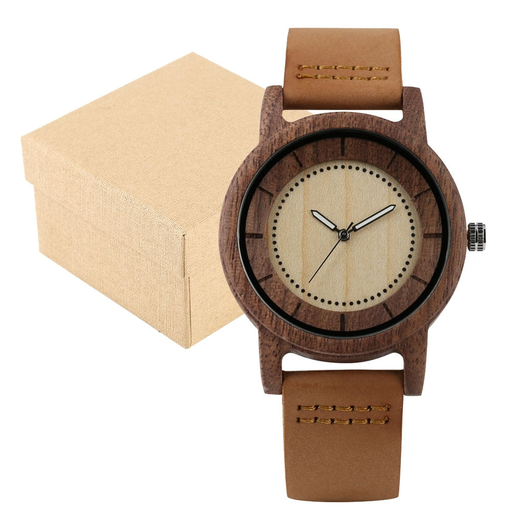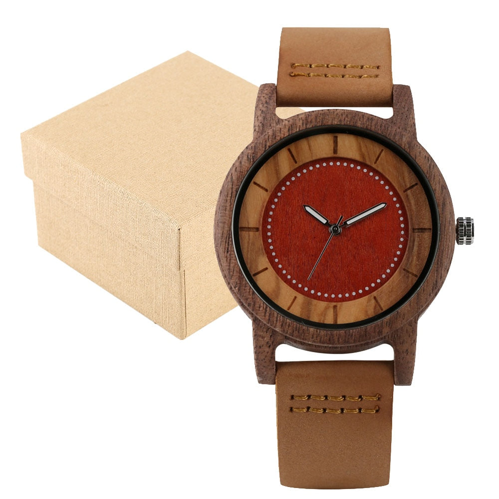 The watch is made from natural wood and is wrapped by hand, so it may have some natural harsh lines and a few blemishes.