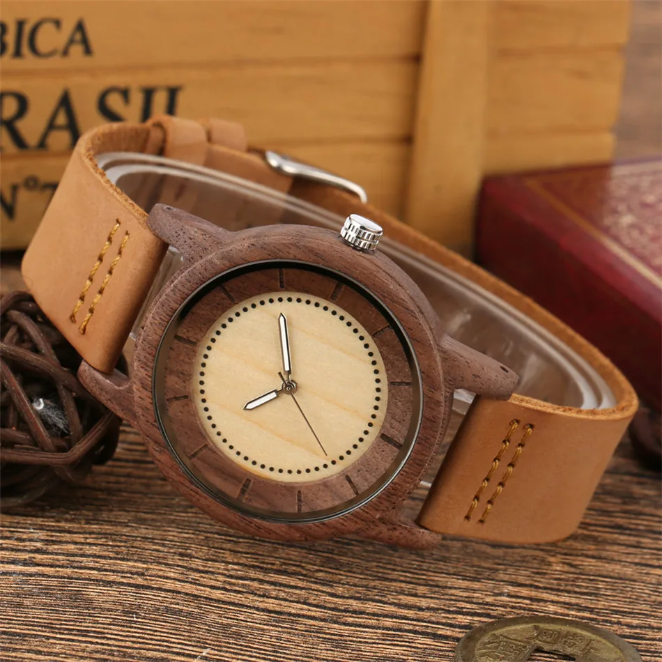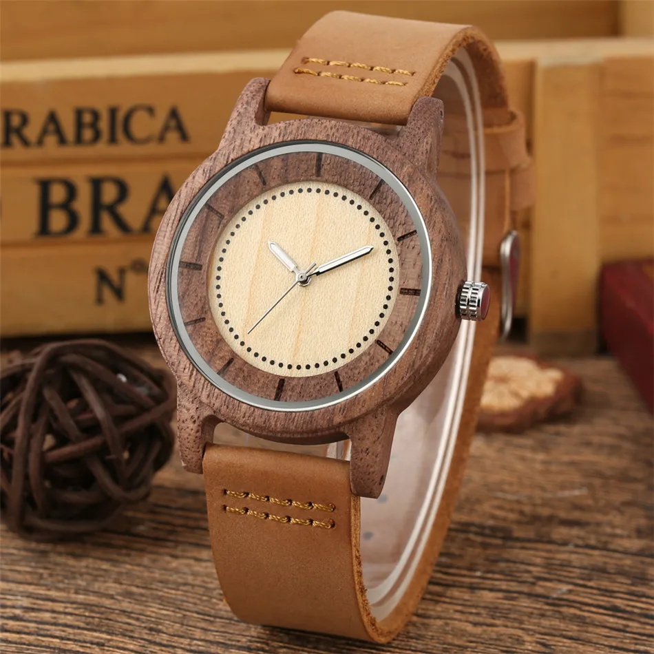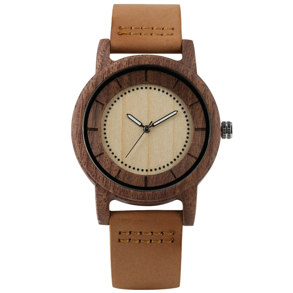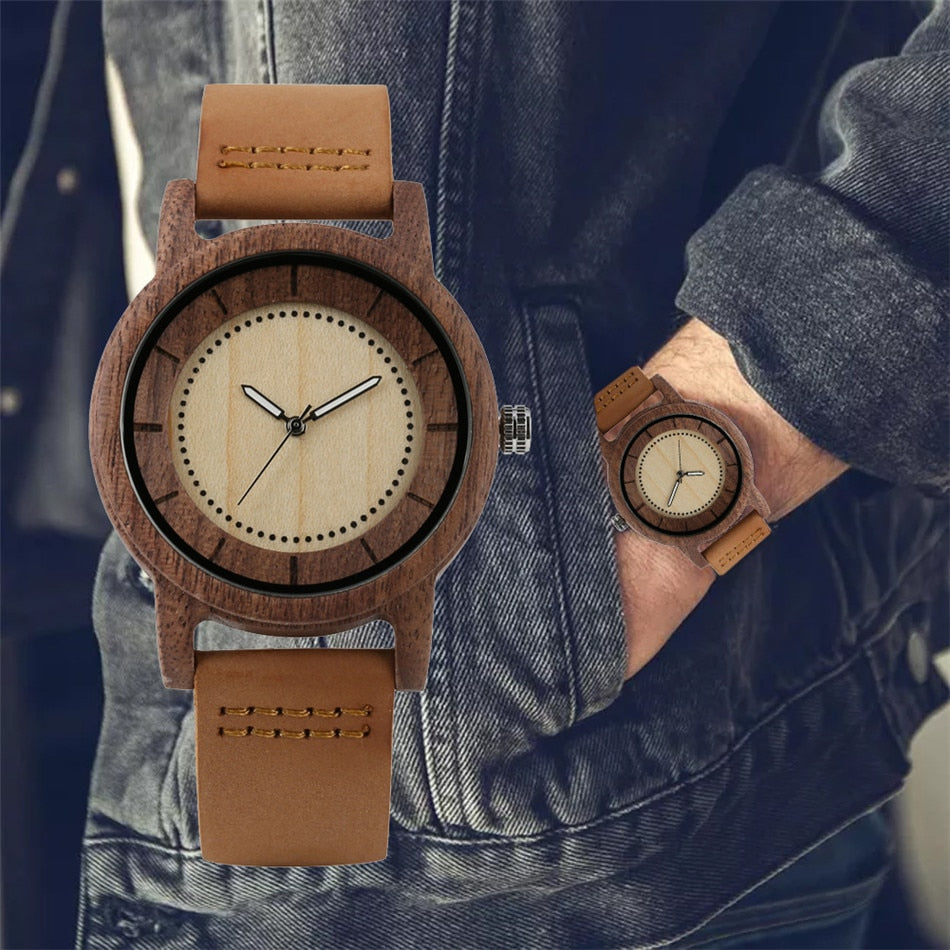 The watch is made from natural wood and is wrapped by hand, so it may have some natural harsh lines and a few blemishes.