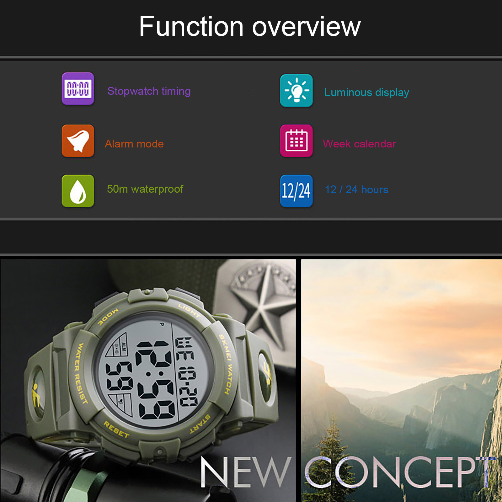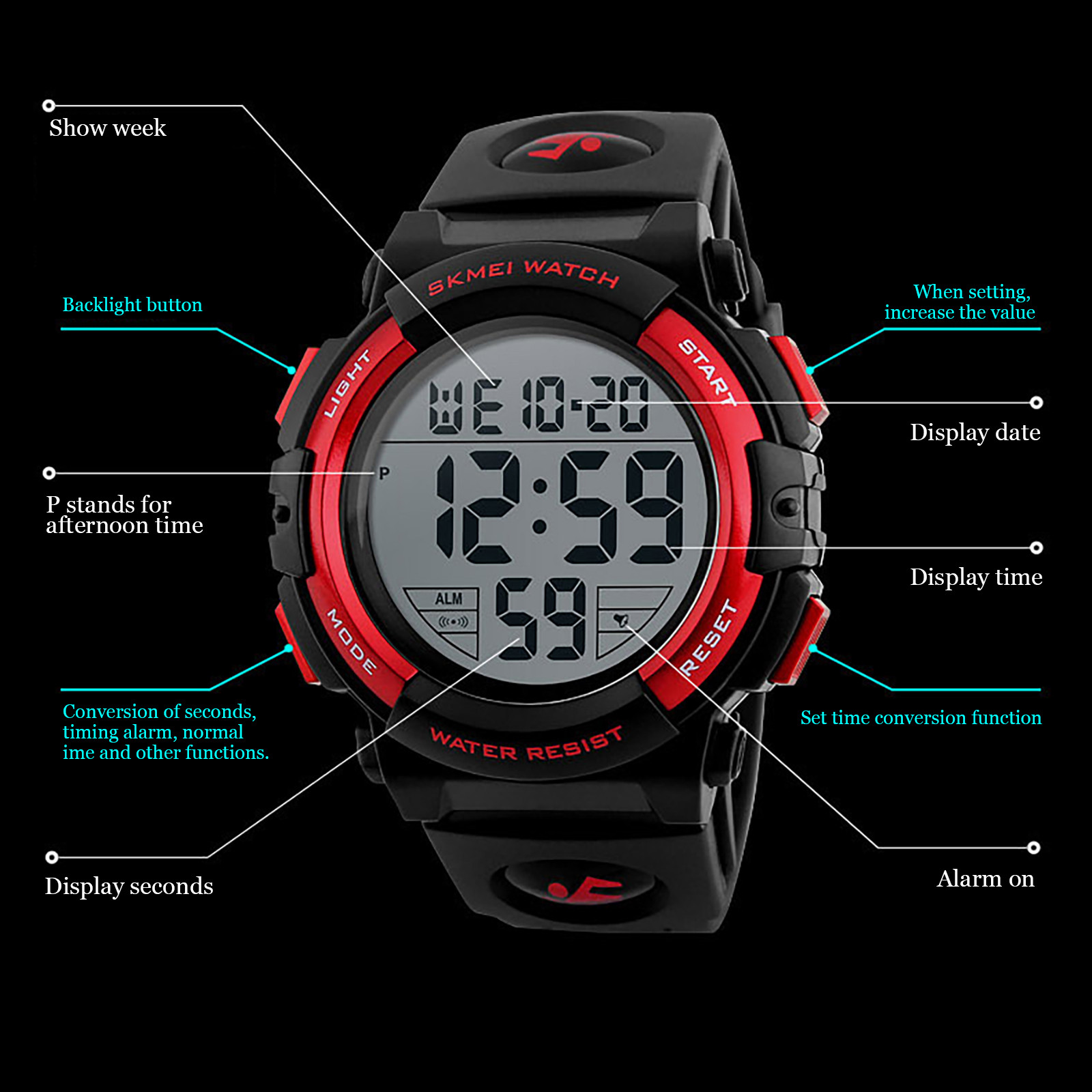 ◆Multifunctional: Digital display, Calendar, LED Back light, Date, Alarm, 50M Waterproof, Shock Resistant, Stopwatch,12/24 Hours. What a perfect sport watch for both outdoor and indoor sports.