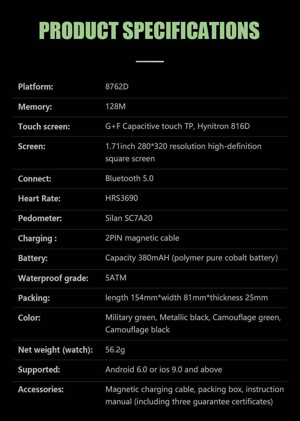 ▸Pedometer, weather, camera control, music control, theater mode, stopwatch, alarm clock, timer, sedentary reminder, breathing training, message, brightness adjustment, mute, split screen function;