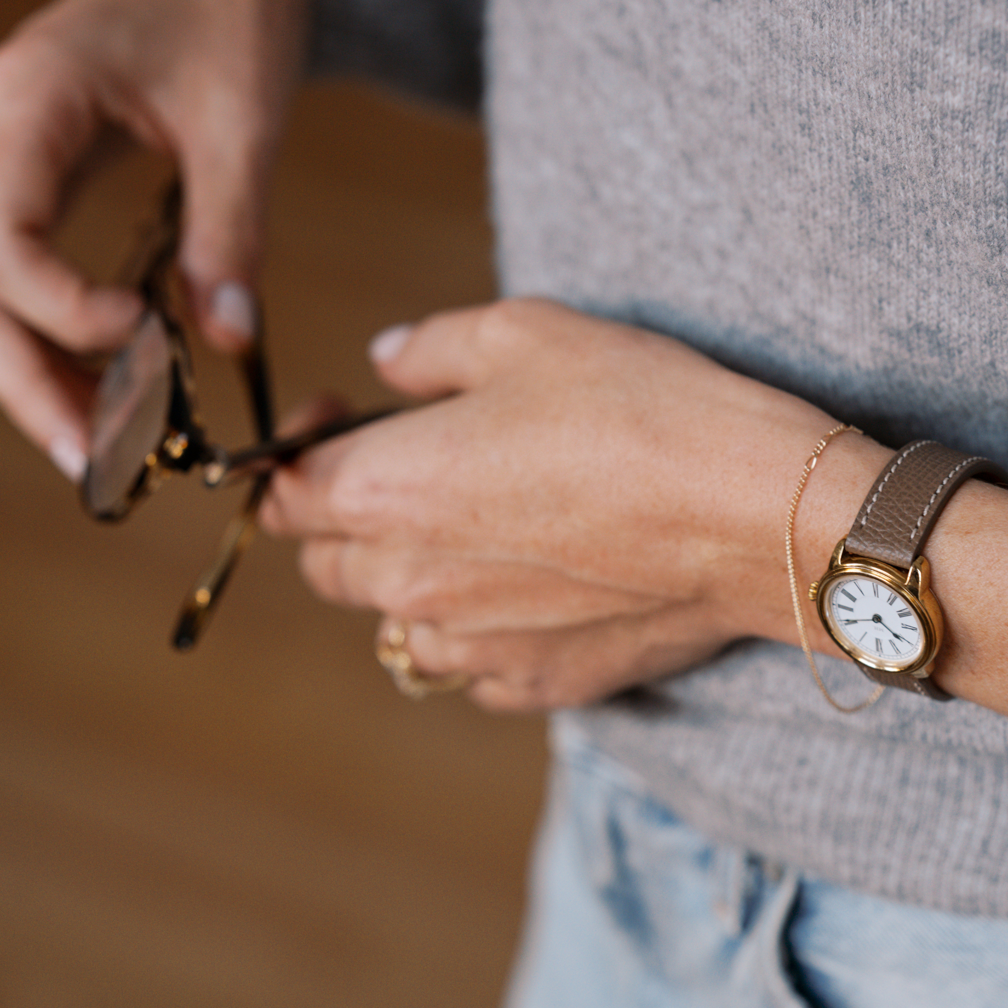 Taupe is your new favorite neutral: Softer than black, more interesting than brown, and just as versatile. This strap is made ofa beautiful, high-quality grained calfskin leather.