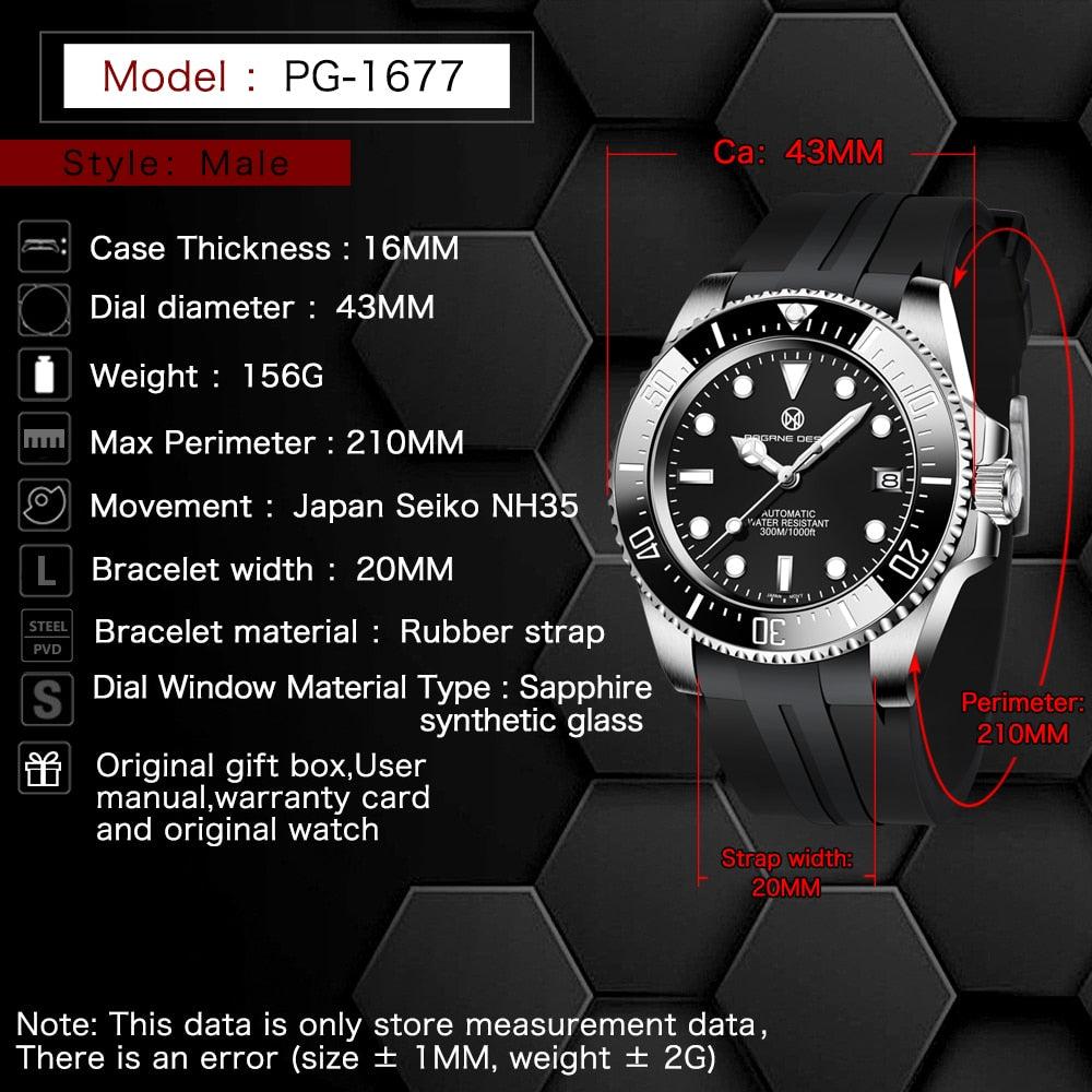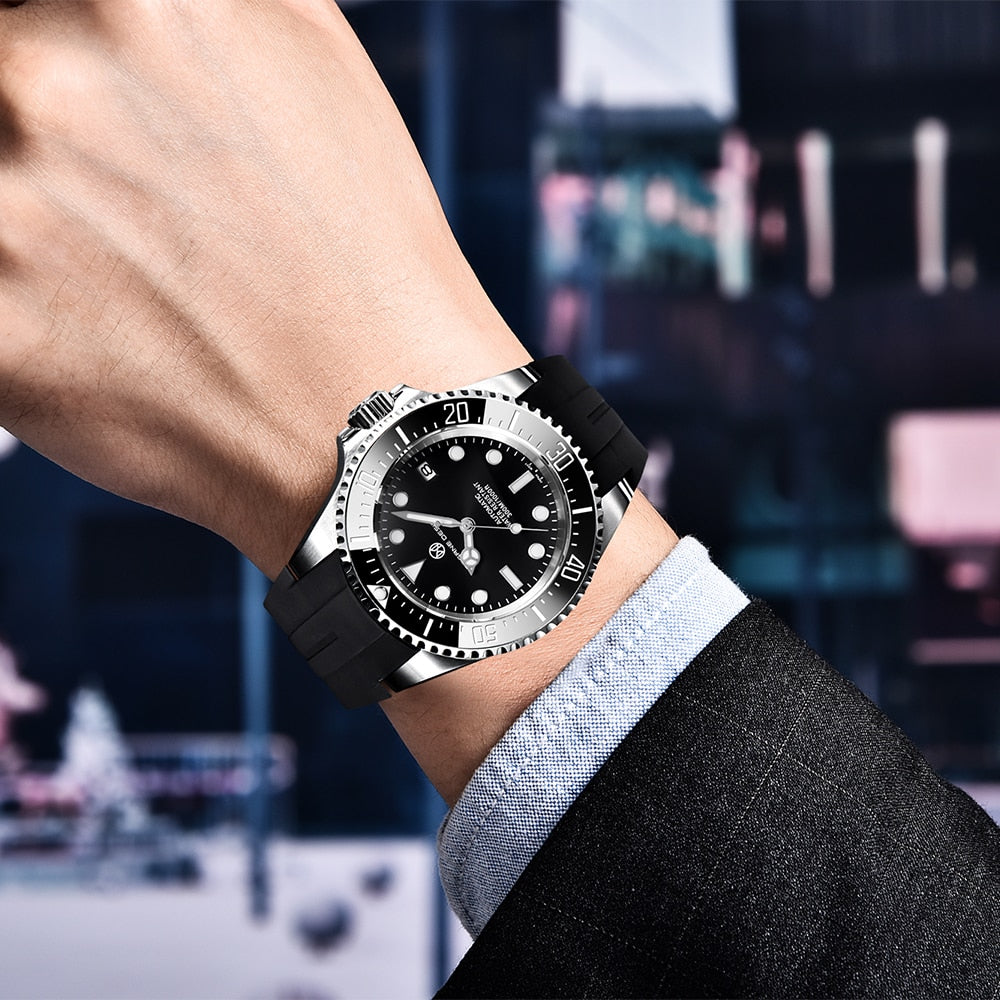 Feature: Shock Resistant,Auto Date,Complete Calendar,Diver,Water Resistant,Swim,luminous hands